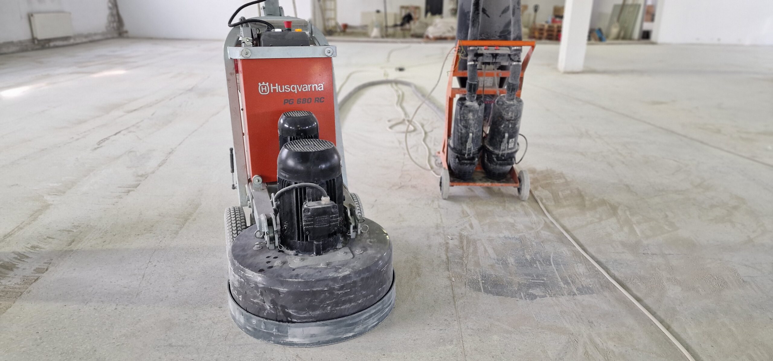 Pardoseala cu beton prafos, macinat. Slefuire pardoseala